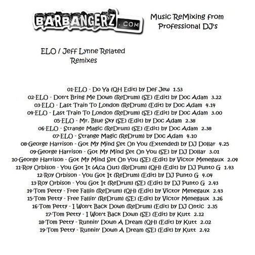 BarBangerz - Music ReMixing from professional DJ's - ELO/Jeff Lynne Remixes