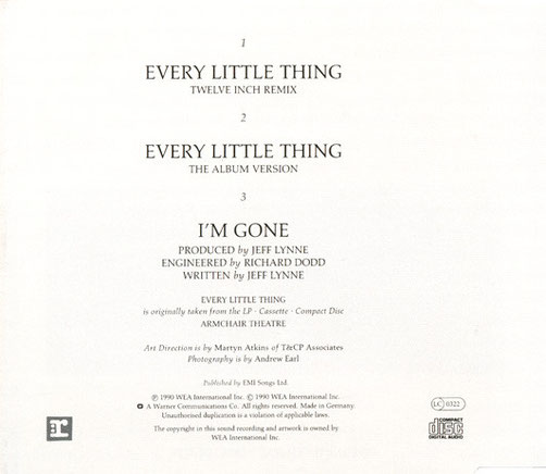 Jeff Lynne - Every Little Thing - Single CD 1990 (Reprise)