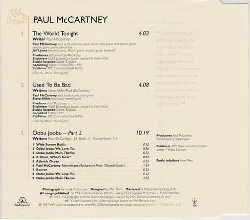 Paul McCartney - The World Tonight - CD Single 1997 (Parlophone 72438842592)