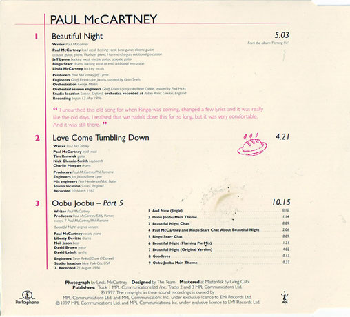 Paul McCartney - Beautiful Night - CD Single 1997 (Parlophone 72438849212)